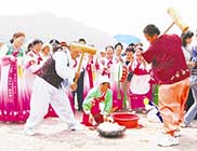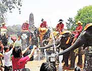 泰国传统的新年,即“宋干节”(“宋干”是梵语的译音),也叫“泼水节”,是公历的每年4月13日到16日。节日里,人们抬着或用车载着巨大的佛像出游,佛像后面跟着一辆辆花车,车上站着化了妆的“宋干女神”,成群结队的男女青年,身着色彩鲜艳的民族服装,敲着长鼓,载歌载舞。在游行队伍经过的道路两旁,善男信女夹道而行,用银钵里盛着用贝叶浸泡过的,渗有香料的水,泼洒到佛像和“宋干女神”身上,祈求新年如意,风调雨顺,然后人们相互洒水,喜笑颜开的祝长辈健康长寿,祝亲朋新年幸运、未婚的青年男女,则用泼水来表示彼此之间的爱慕之情。泰国人在新年第一天都在窗台、门口端放一盆清水,家家户户都要到郊外…